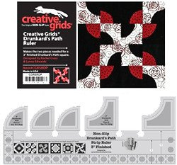 Artikelnummer: CGRISE30 OverzichtDe Creative Grids Drunkards Path Strip ruler is ontworpen om met één liniaal het quiltblok Drunkards Path te snijden.