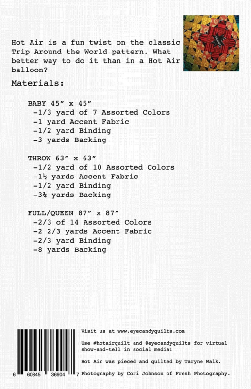 OverzichtHet Quiltpatroon Hot Air is afgeleid van het klassieke Trip Around the World patroon.