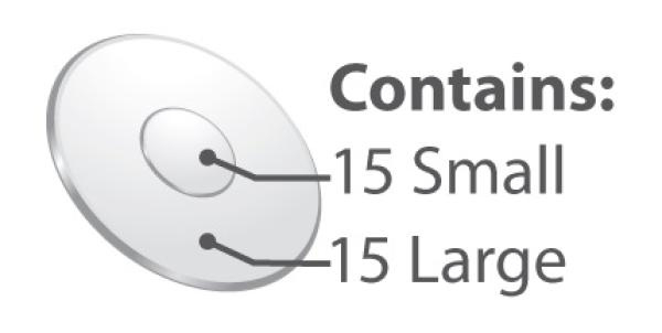 In de verpakking zitten 15 plakbare rondjes die uit twee delen bestaat: