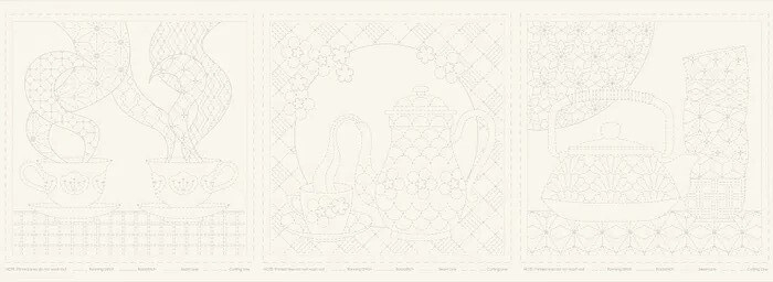 Voorbedrukt Sashiko panels op een neutral ecru stof.
